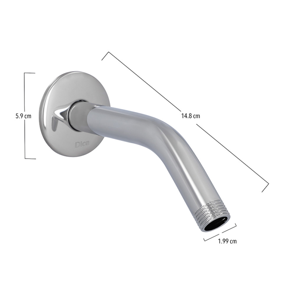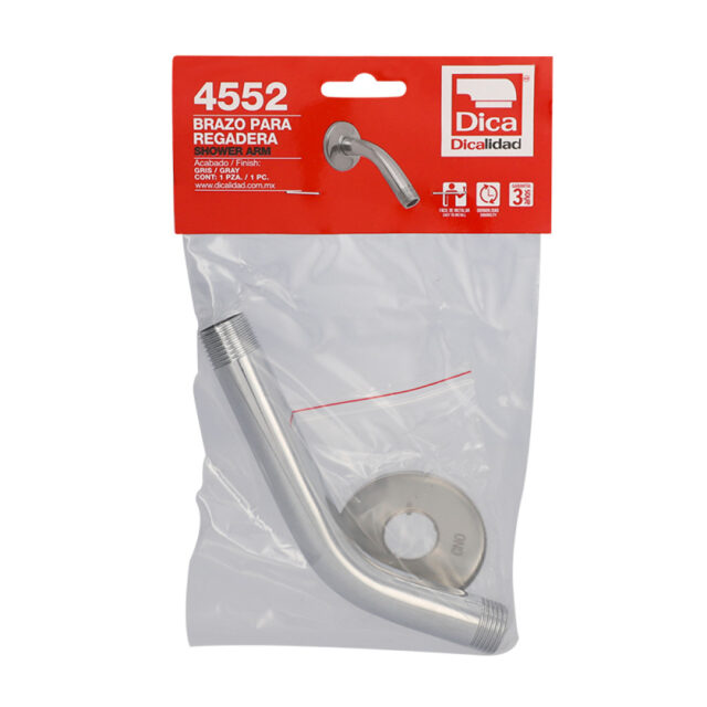 - Materiales: Brazo de regadera de acero inoxidable y chapetón de acero inoxidable. El acero inoxidable es bastante resistente, por lo que nos brinda durabilidad.
