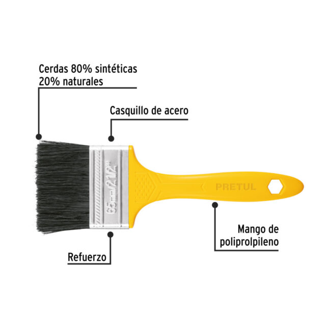 BROCHA USO GENERAL DE 2-1/2" CON MANGO DE PLÁSTICO, PRETUL