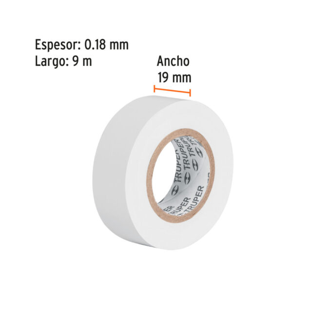 CINTA DE AISLAR DE 9 M X 19 MM, BLANCA, TRUPER