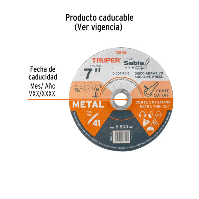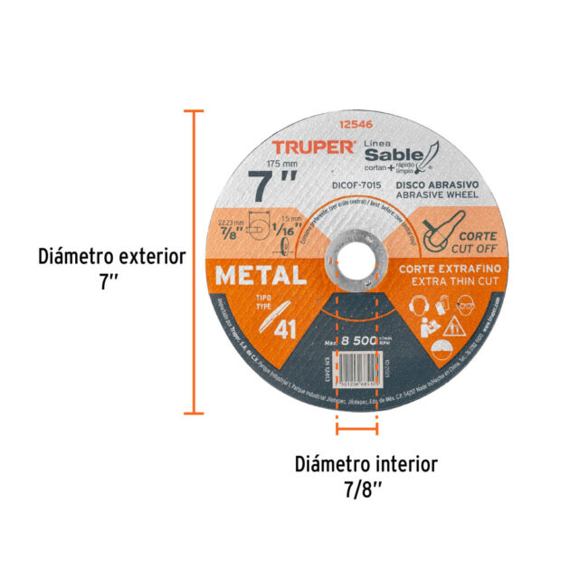 DISCO TIPO 41 DE 7″ X 1.5 MM CORTE FINO DE METAL, SABLE