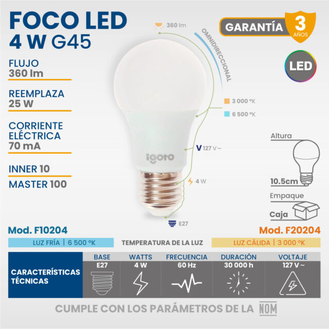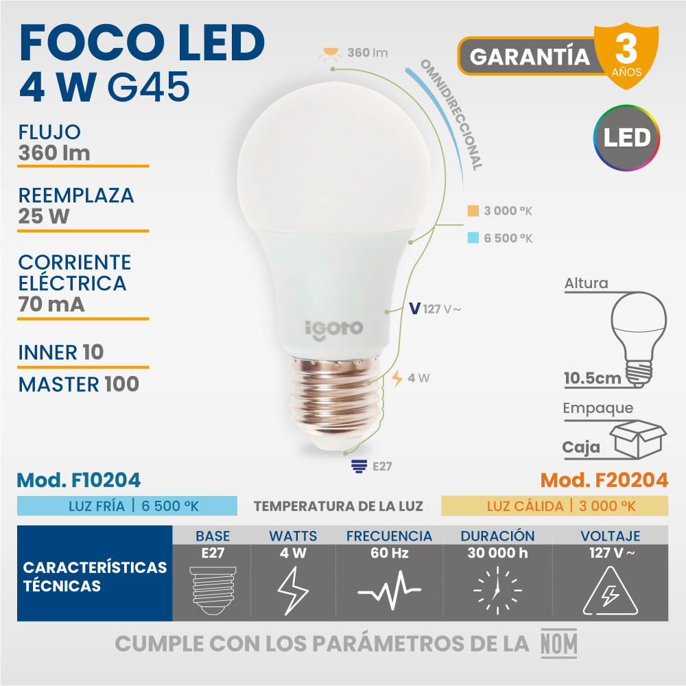 FOCO LED G45 4 W 6500 K (LUZ FRIA)
