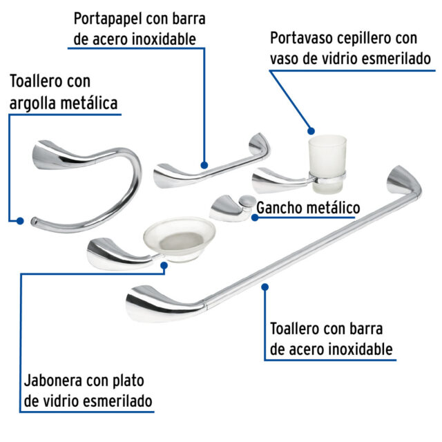 JUEGO DE 6 ACCESORIOS PARA BAÑO METÁLICO, FOSET AERO