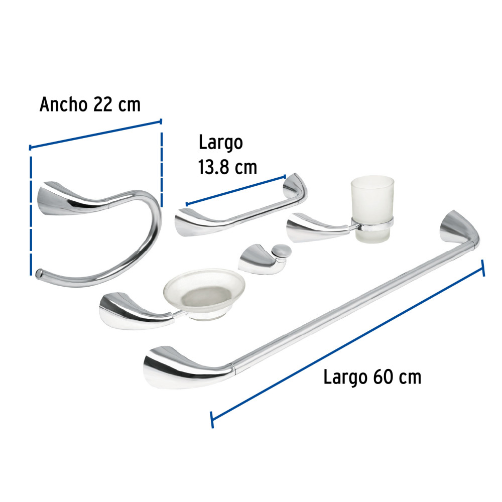 JUEGO DE 6 ACCESORIOS PARA BAÑO METÁLICO, FOSET AERO