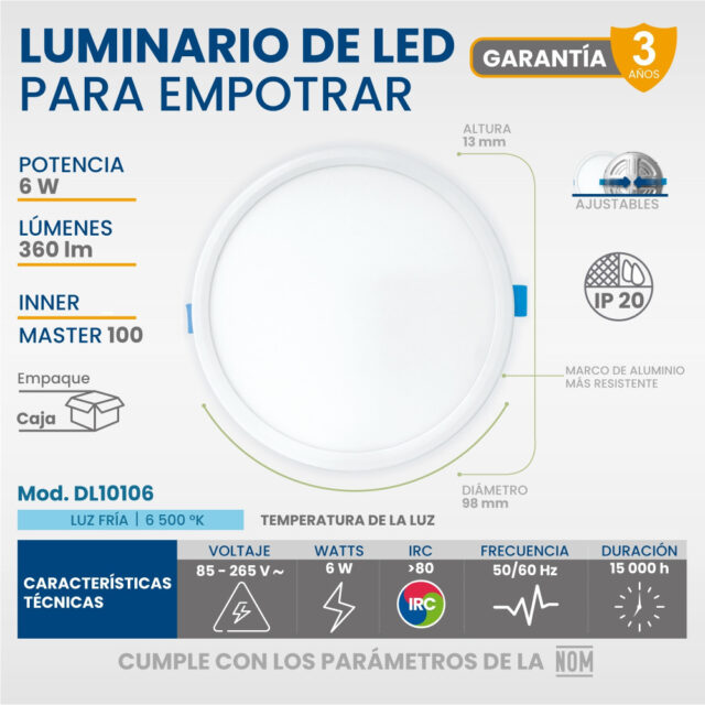 LUMINARIO LED CIRCULAR PARA EMPOTRAR 6 W 6500 K (LUZ FRIA)