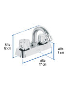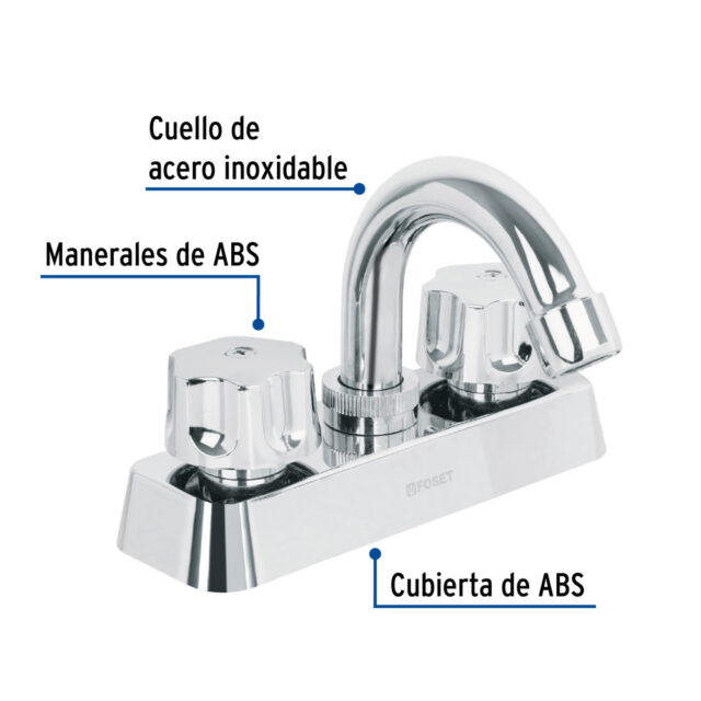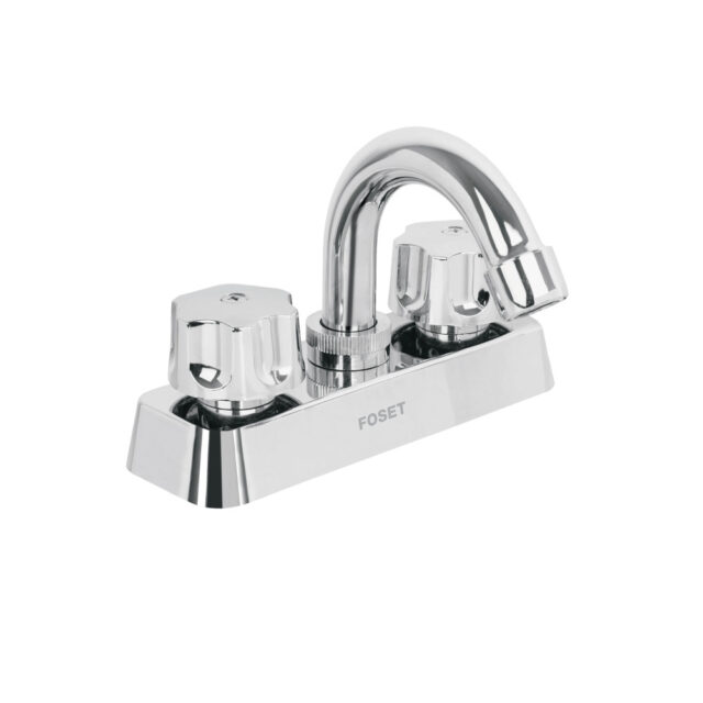 MEZCLADORA 4" LAVABO, ABS, CUELLO CURVO, HEXAGONAL, BASIC