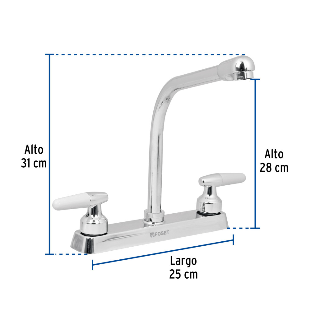 MEZCLADORA 8" FREGADERO CROMO, CUELLO COBRA, CONO, BASIC