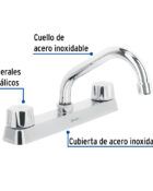 MEZCLADORA 8" FREGADERO CROMO, CUELLO CORTO, HEXAGONAL BASIC