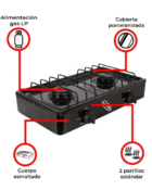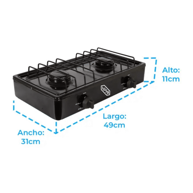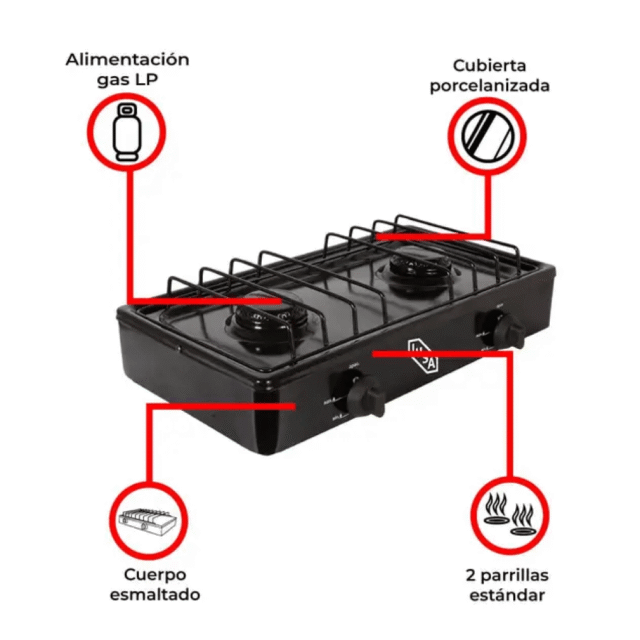 PARRILLA ESTANDAR DE GAS CON 2 QUEMADORES NEGRO