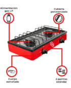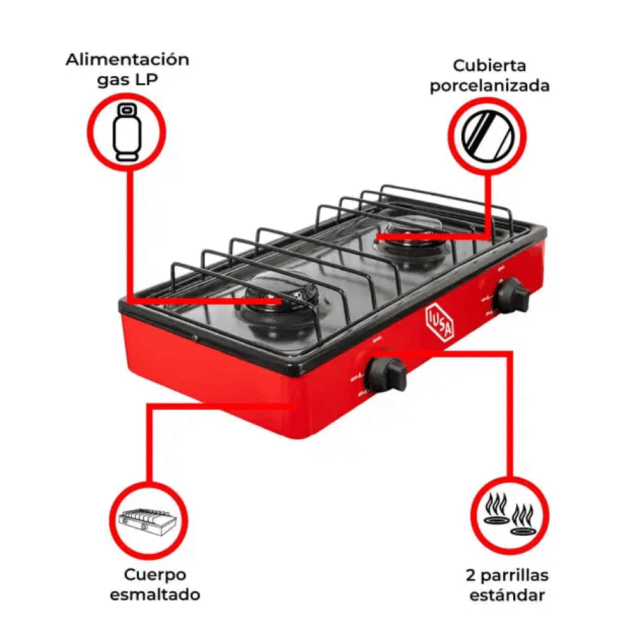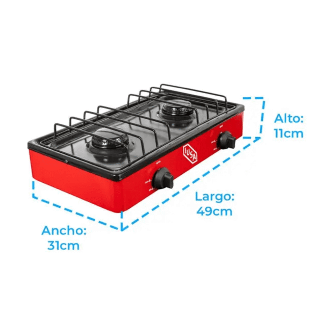 PARRILLA ESTANDAR DE GAS CON 2 QUEMADORES ROJO