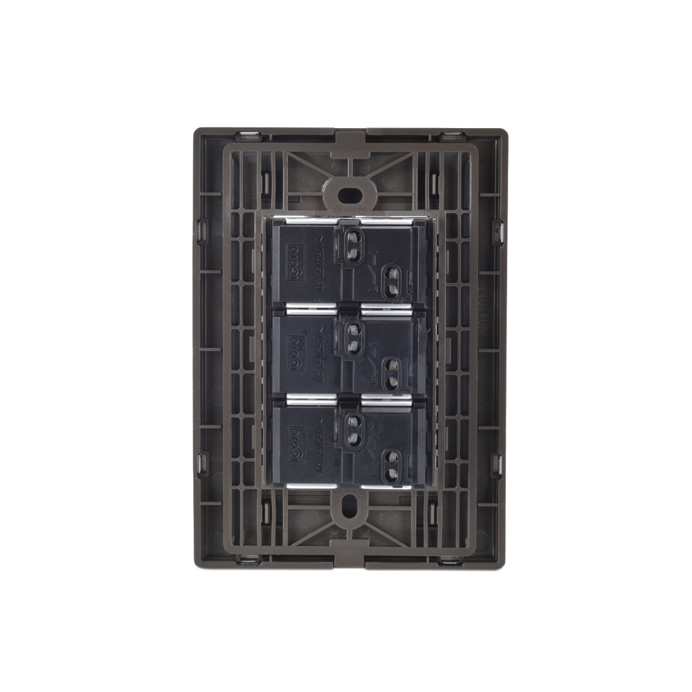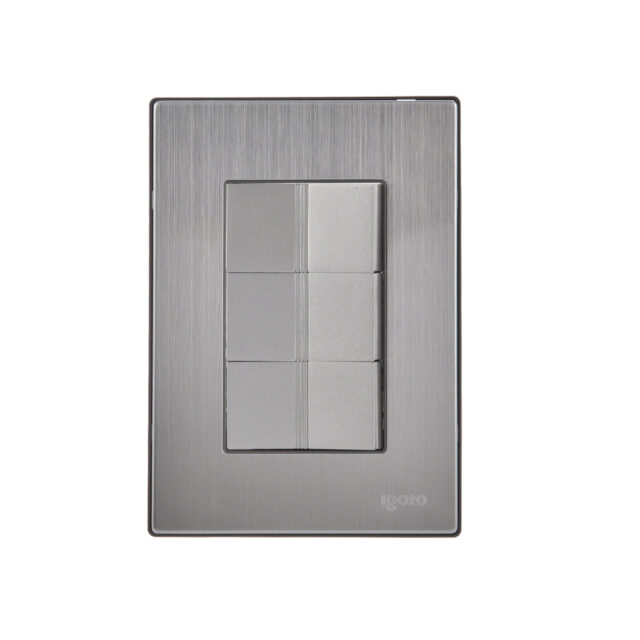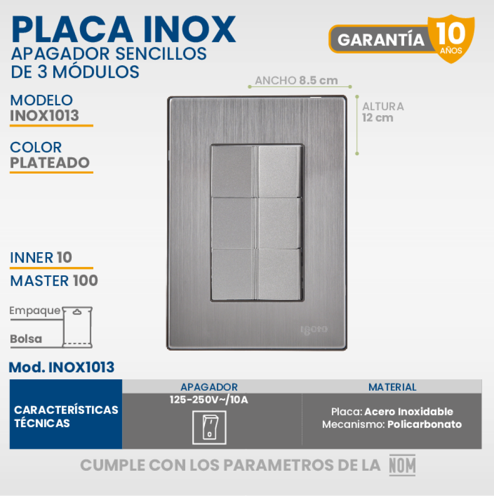 PLACA ARMADA INOX CON 3 APAGADORES SENCILLOS DE 1 MODULO COLOR PLATA
