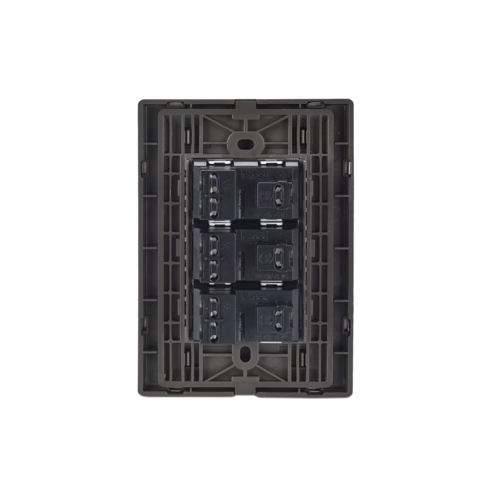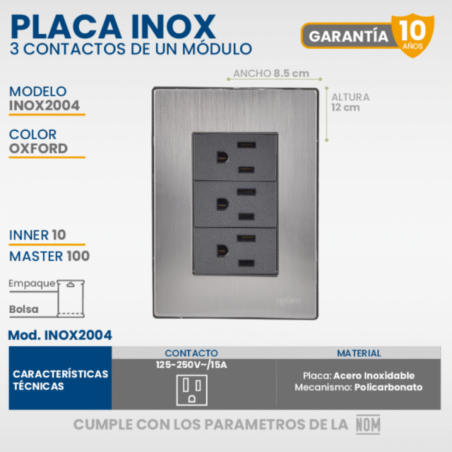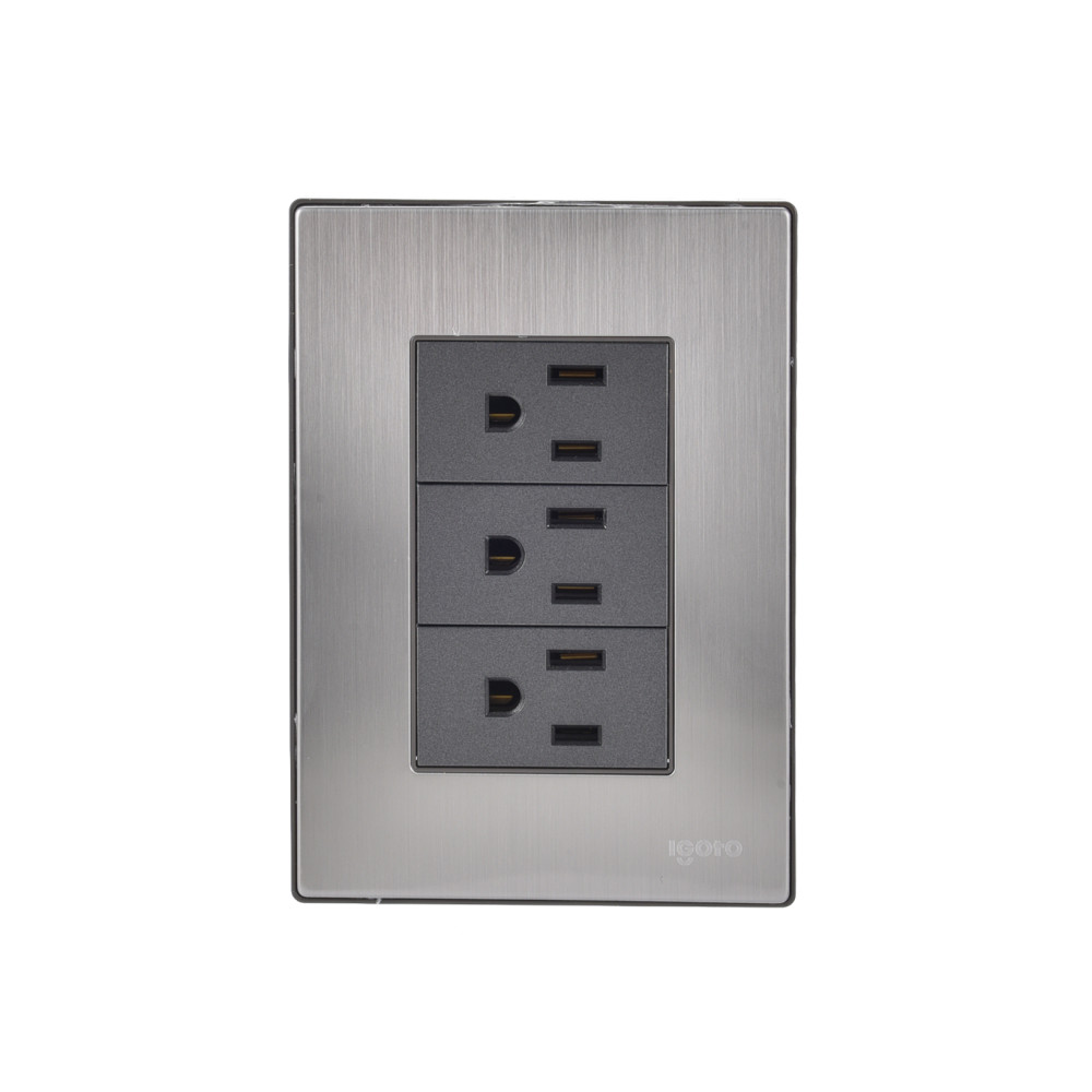 PLACA ARMADA INOX CON 3 CONTACTOS SENCILLOS DE 1 MODULO COLOR OXFORD