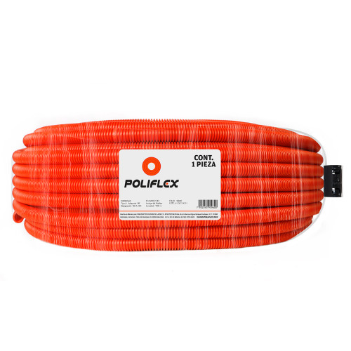 Poliflex naranja 1/2″ rollo con 100 m, para alojar y proteger conductores eléctricos, en la edificación de viviendas que tengan como método constructivo todo tipo de losas aligeradas como vigueta y bovedilla de hormigón y poliestireno, casetón de poliestireno, casetón de tepezil, etc.