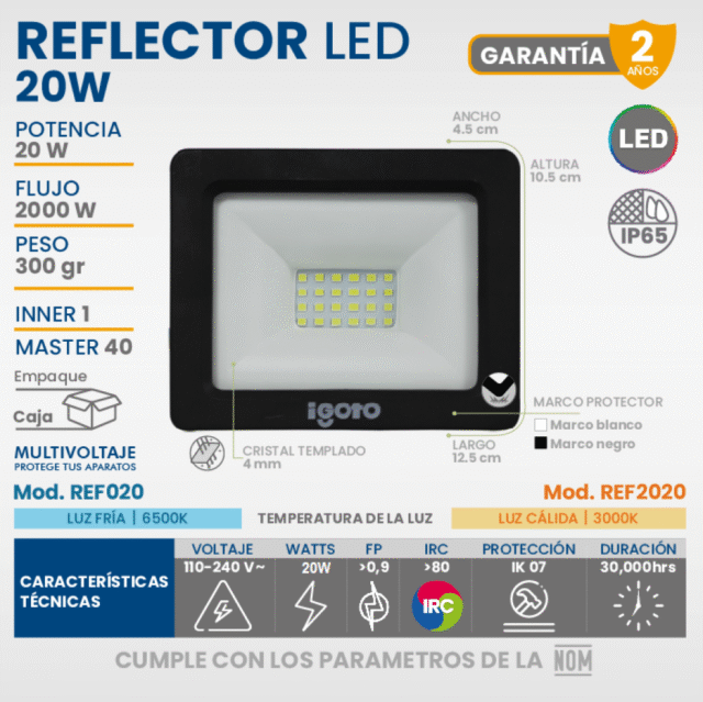 REFLECTOR LED 20 W 6500 K (LUZ FRIA)
