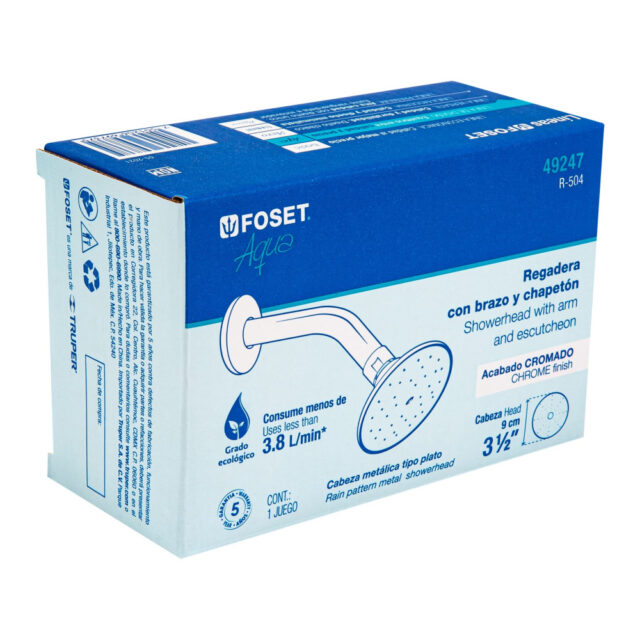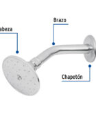 REGADERA REDONDA 3-1/2", METALICA, BRAZO Y CHAPETON, CROMO